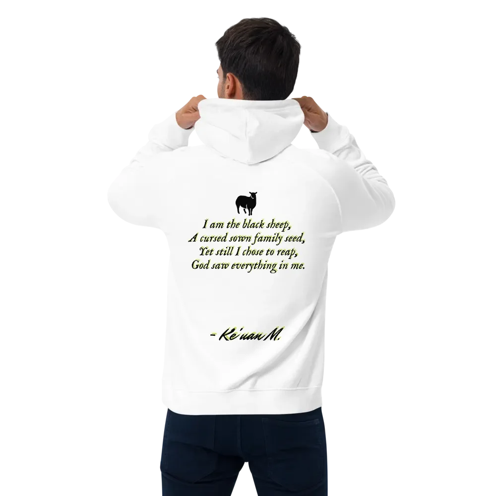 The "Black Sheep" hoodie was crafted in the thought process of our own, Ke'uan May. The approach was to resemble the idealization of the "Black Sheep" label that have been casted on the majority of our lives. To resemble that the black sheep isnt of disearnment, but uniqueness, resliency, and leadership.